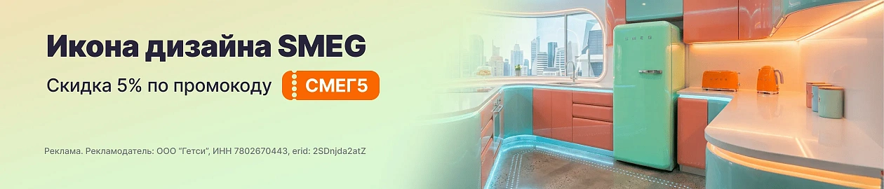 Техника SMEG — это сочетание выразительного дизайна и современных технологий. В рамках акции вы можете приобрести технику SMEG с дополнительной выгодой — скидка 5% по промокоду СМЕГ5. Создайте кухню, в которой каждая деталь продумана — от функциональности до эстетики.