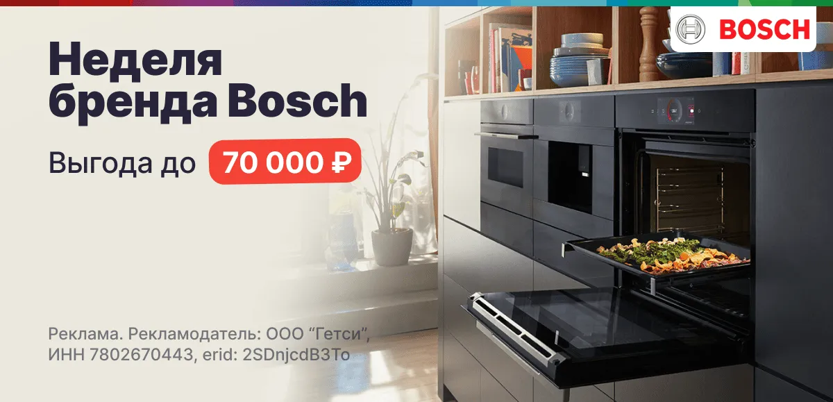 В акции участвует техника Bosch из выбранного ассортимента. Размер скидки зависит от модели и может достигать 70 000 ₽. Актуальные цены и условия указаны на странице товара. Предложение действует ограниченное время и при наличии товаров.