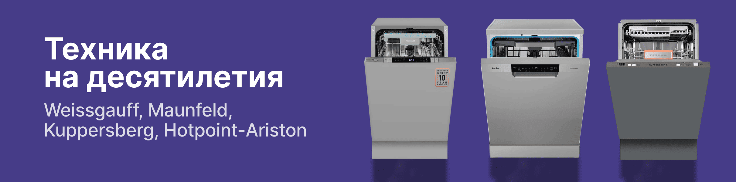 3. Техника на десятилетия. Бюджетные марки (Эконом-сегмент): Weissgauff, Maunfeld, Kuppersberg, Hotpoint-Ariston. Это лучший вариант при ограниченном бюджете. За относительно скромную сумму вы получаете полнофункциональную посудомоечную машину. Как правило, собираются на заводах в Китае или Турции, что и позволяет снизить стоимость.