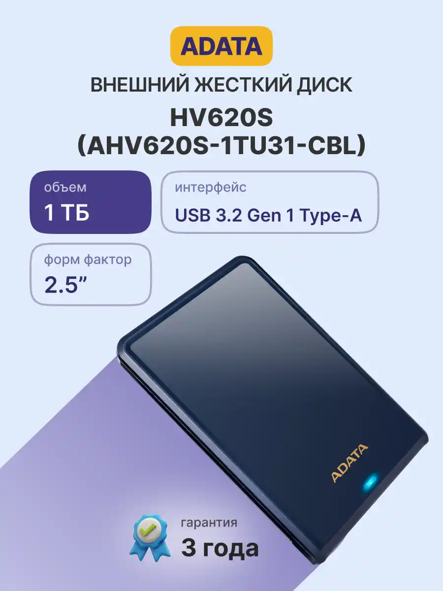 Внешний HDD диск ADATA DashDrive HV620 Slim 1TB Dark Blue (AHV620S-1TU31-CBL)