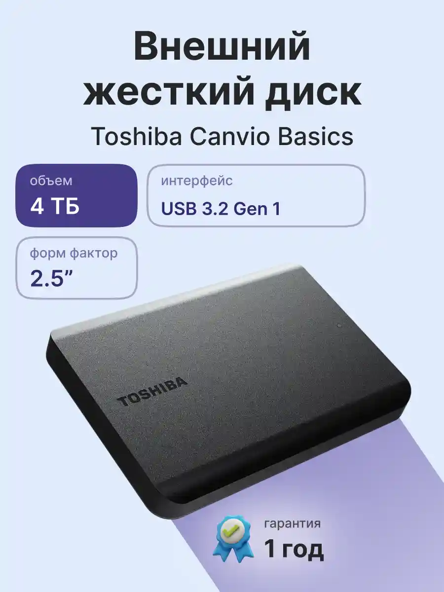 Быстро передавайте файлы с SuperSpeed USB 3.2 Gen 1 и сохраняйте до 4 ТБ данных на внешних жестких дисках Canvio Basics. Эти устройства готовы к использованию с Microsoft Windows и не требуют программного обеспечения установку, так что начать хранить все свои любимые файлы. Будь то на рабочем столе или в пути, его неподвластный времени дизайн с матовым покрытием означает, что он всегда будет хорошо выглядеть. Более того, жесткий диск также позволяет подключаться к старому оборудованию с помощью USB 2.0 совместимость.