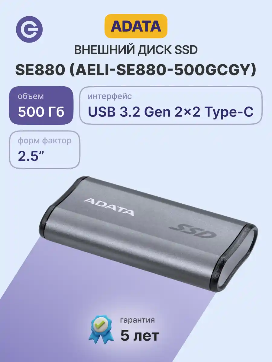 Внешний SSD диск ADATA External SSD SE880, 512GB (AELI-SE880-500GCGY)