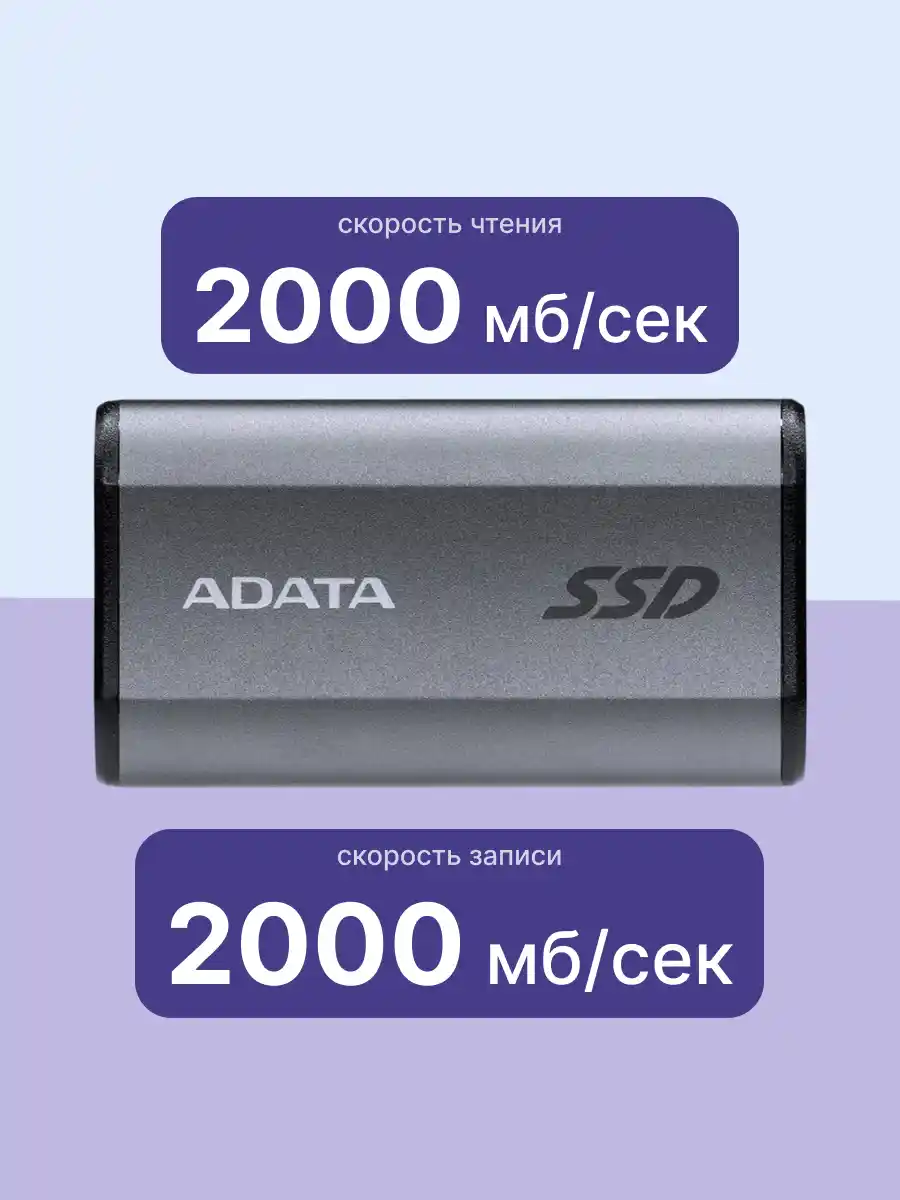 Это результат внутреннего тестирования, основанный на сравнении с внешними жесткими дисками ADATA. ПК, использованные в тесте, поддерживают USB 3.2 Gen 2 и имеют установленный драйвер UASP. Фактические скорости могут отличаться в зависимости от конфигурации аппаратного и программного обеспечения хост-устройства.