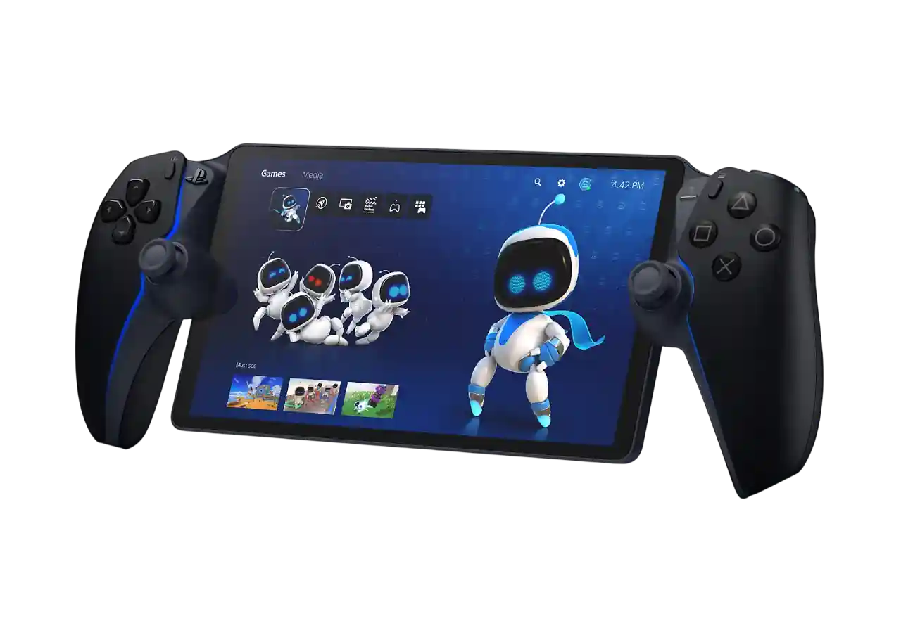 Portal оснащён всеми функциями контроллера DualSense — адаптивными триггерами и тактильной отдачей, что даёт полное погружение даже в портативном режиме. Для вывода звука предусмотрены встроенные динамики и стандартный разъём для наушников 3.5 мм, либо можно подключить беспроводные наушники серии PULSE Explore, подключаемые по беспроводной технологии PlayStation Link. Встроенный аккумулятор обеспечивает до 10 часов автономной игры.