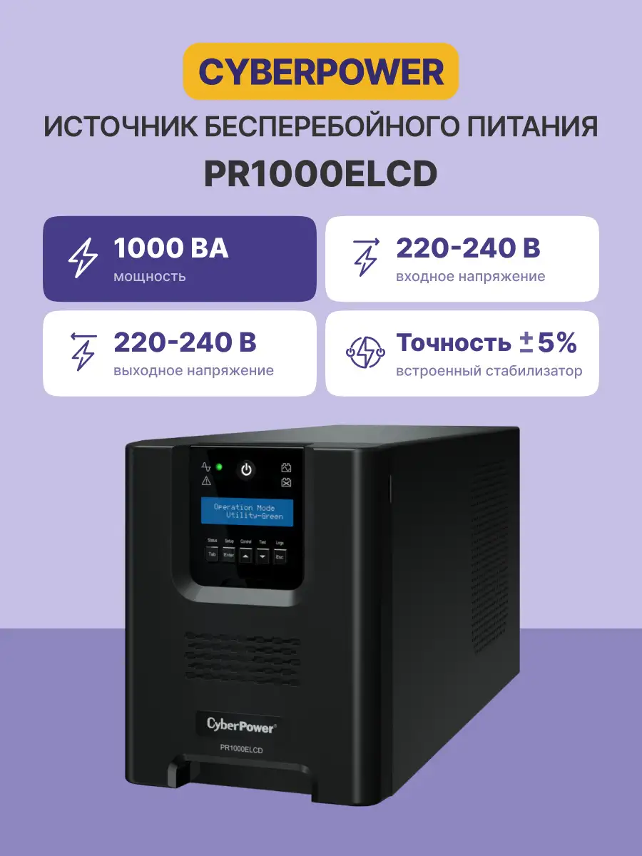 ИБП CYBERPOWER 1000VA/900W (PR1000ELCD)