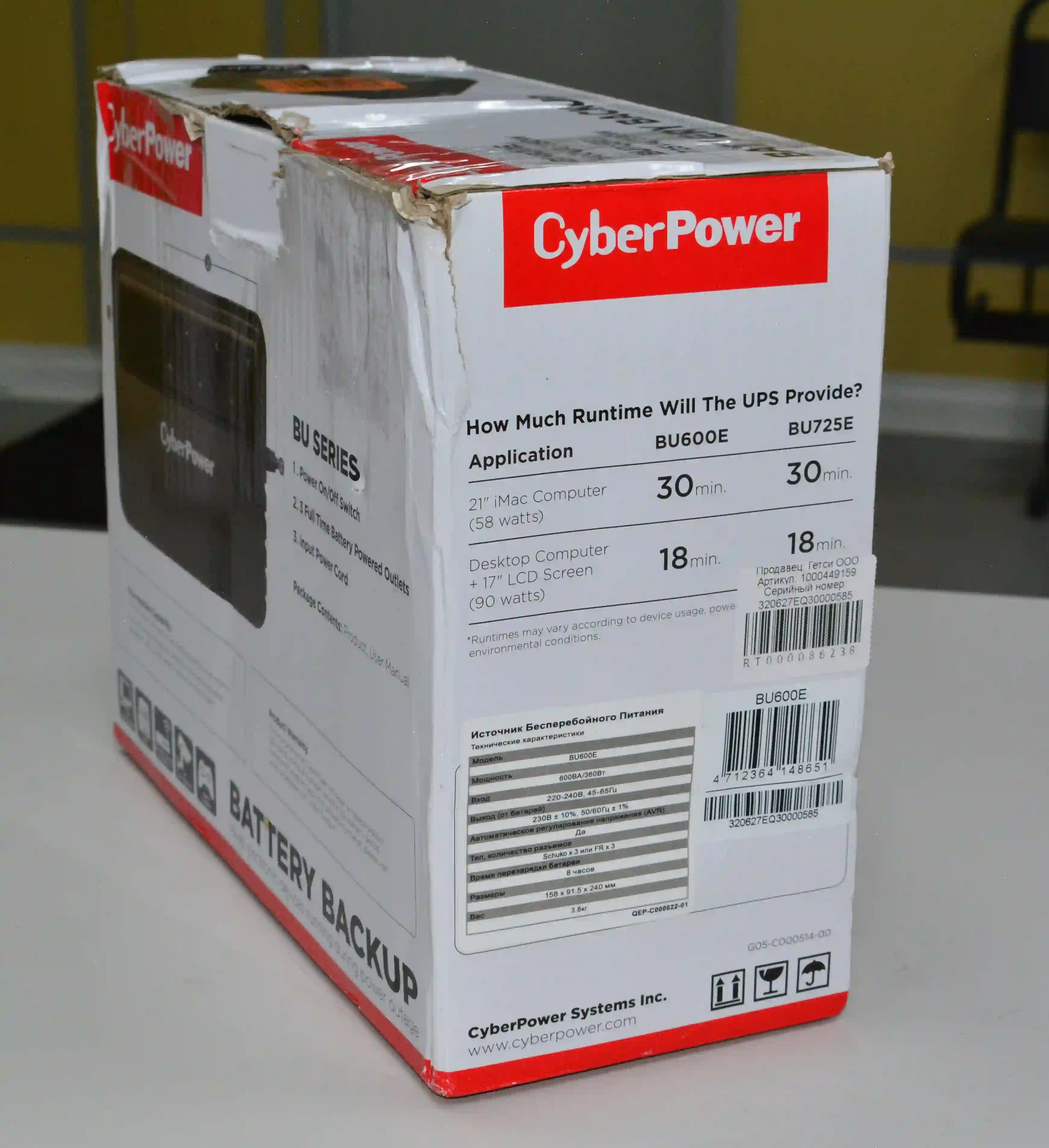 ИБП CYBERPOWER 600VA/360W (BU600E) k4 000086238