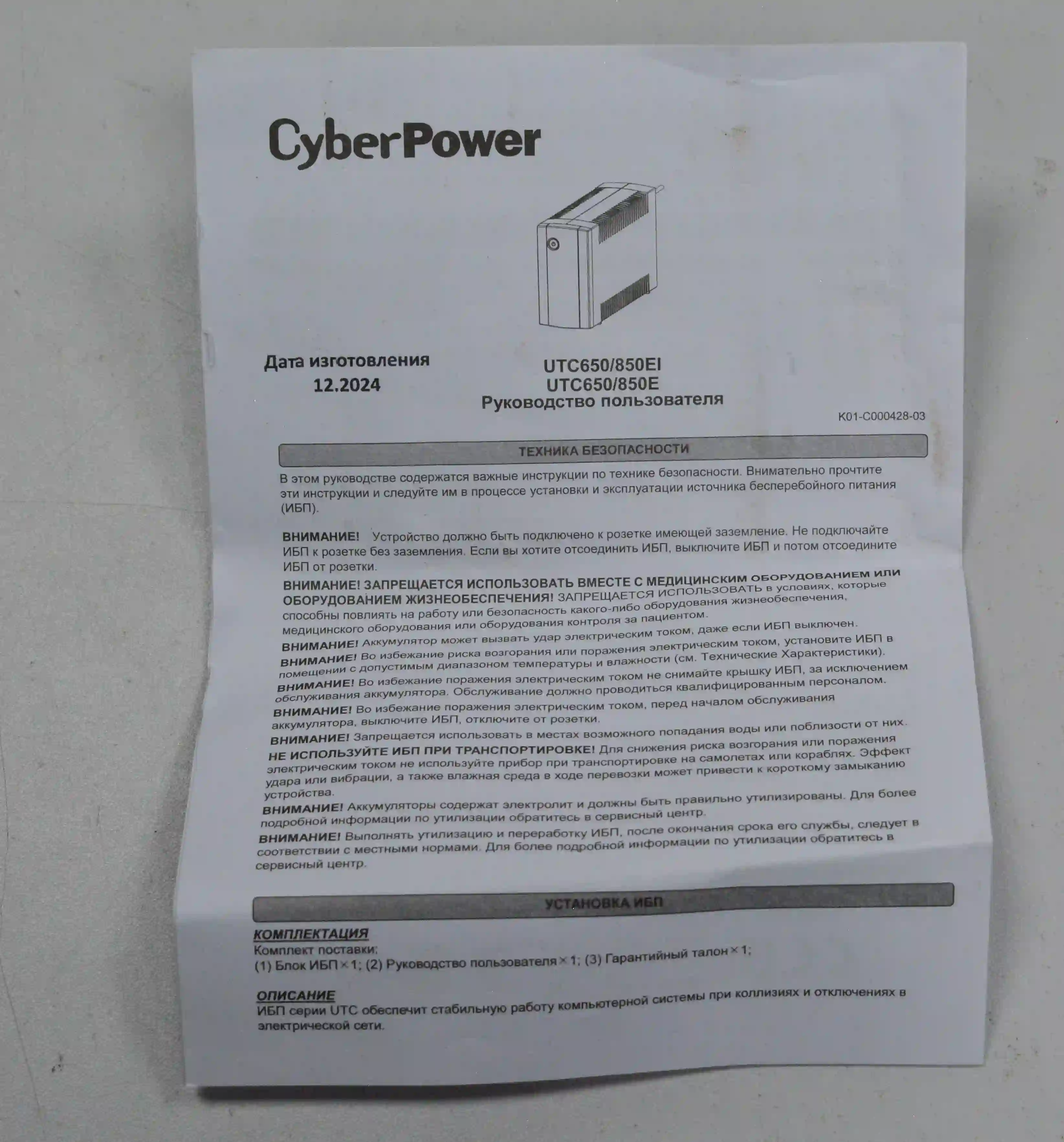 ИБП CYBERPOWER 650VA/360W (UTC650E) k4 000067683