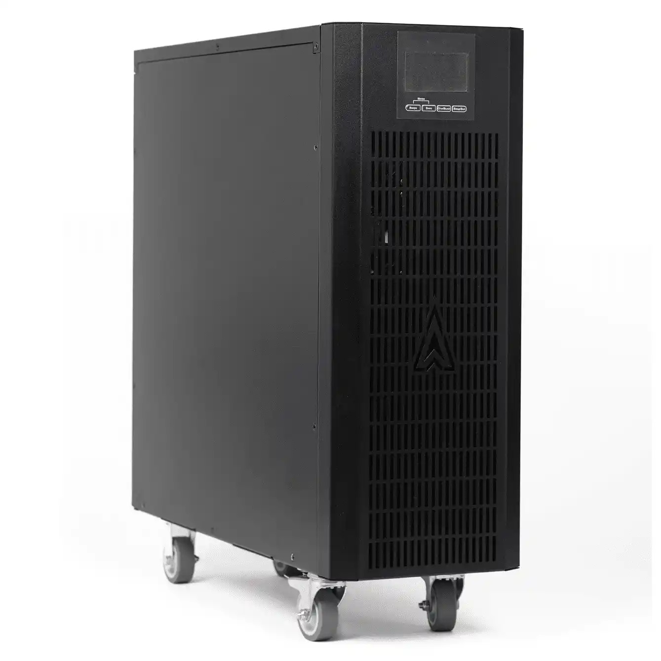 ИБП постоянно проверяет сам себя и цепь аккумуляторов. Если нужно заменить батареи, это можно сделать без выключения оборудования — горячая замена предусмотрена как для внутренних, так и для внешних батарейных модулей. Есть гибкие настройки включения и отключения под конкретные задачи. Установка напольная, поэтому устройство занимает свое место в стойке или на полу в техническом помещении. Это мощное решение для защиты целого дома, офиса или производства от всех проблем с электричеством.