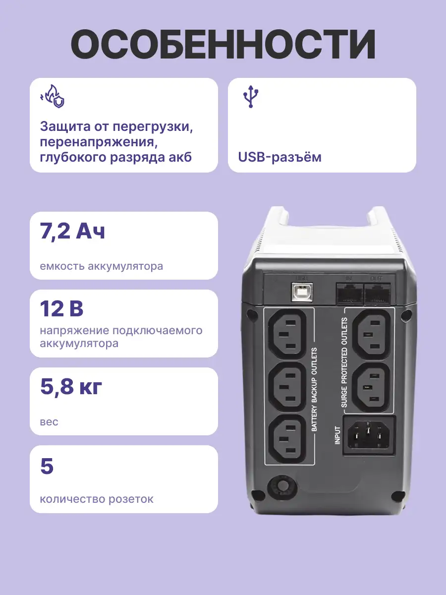 - Тип ИБП: Line-Interactive