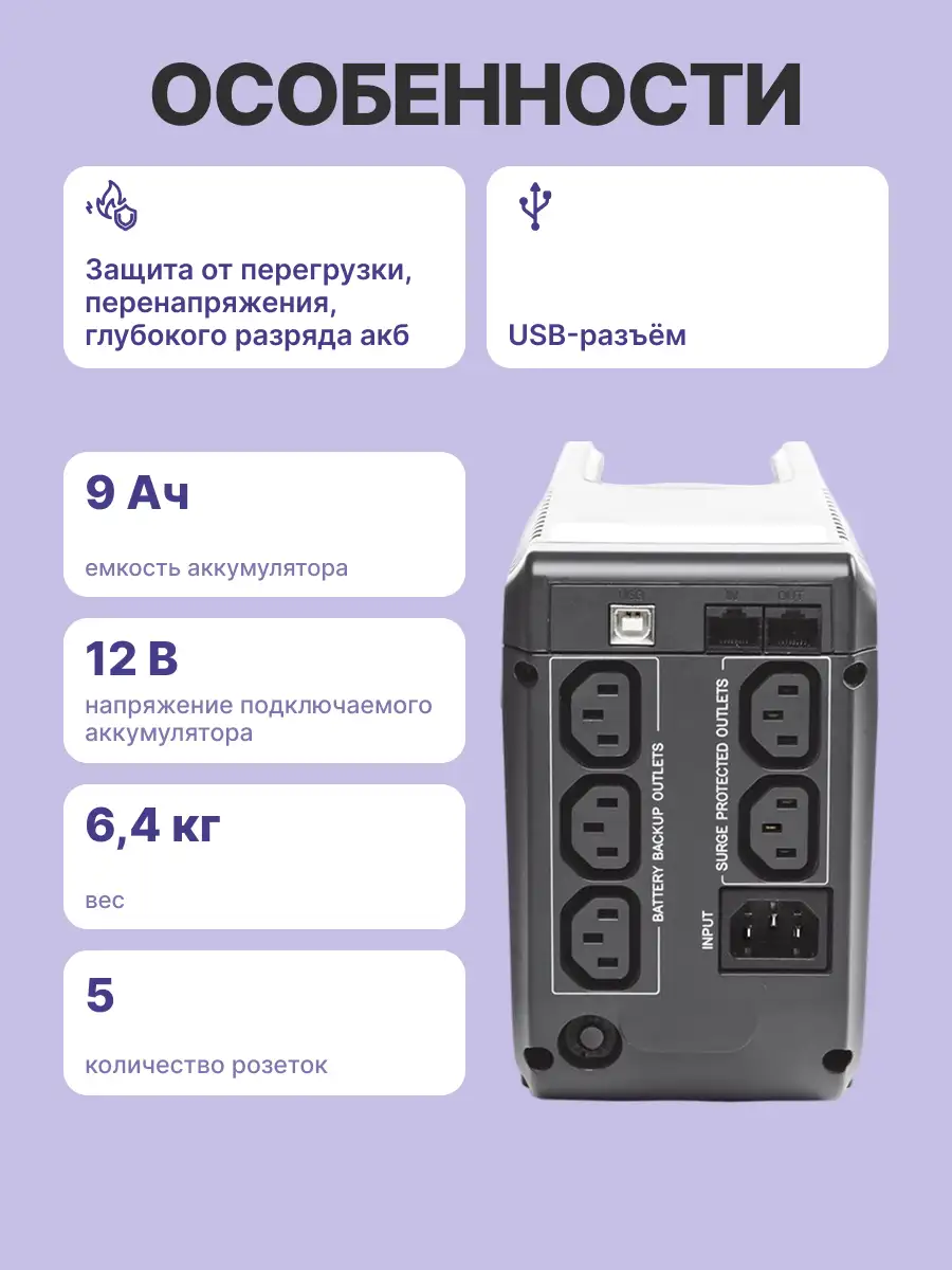 - Тип ИБП: Line-Interactive