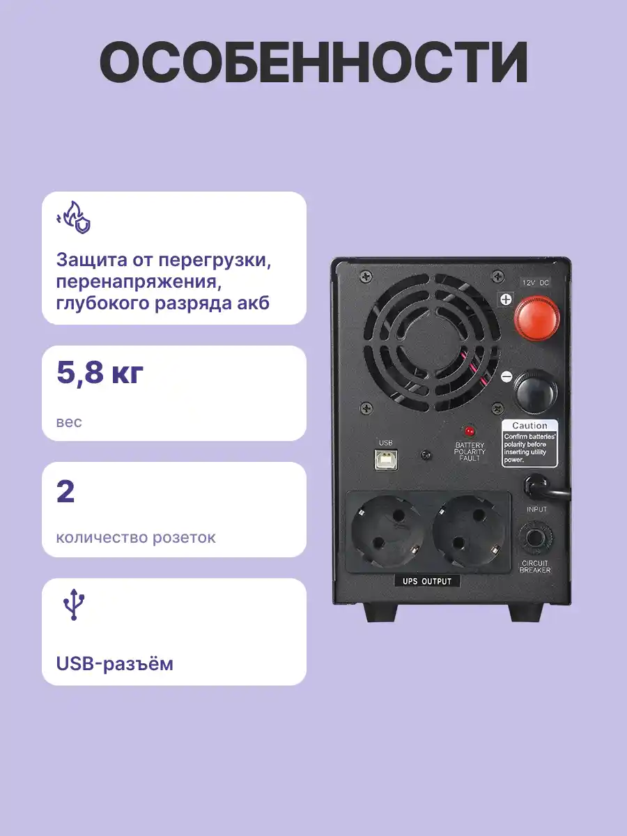 - Тип ИБП: Line-Interactive