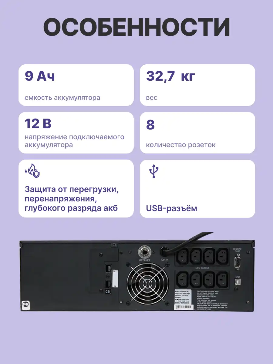 - Тип ИБП: Line-Interactive
