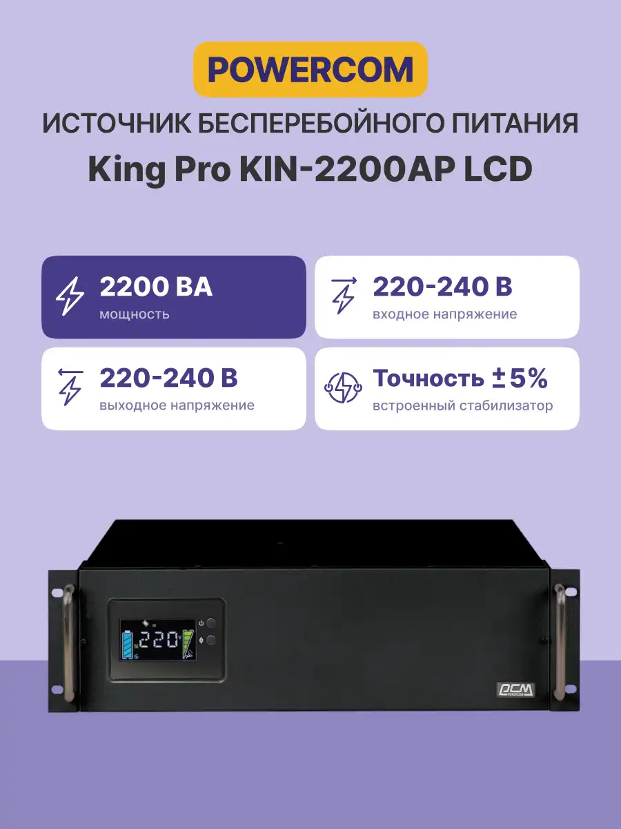 ИБП POWERCOM King Pro RM KIN-2200AP LCD