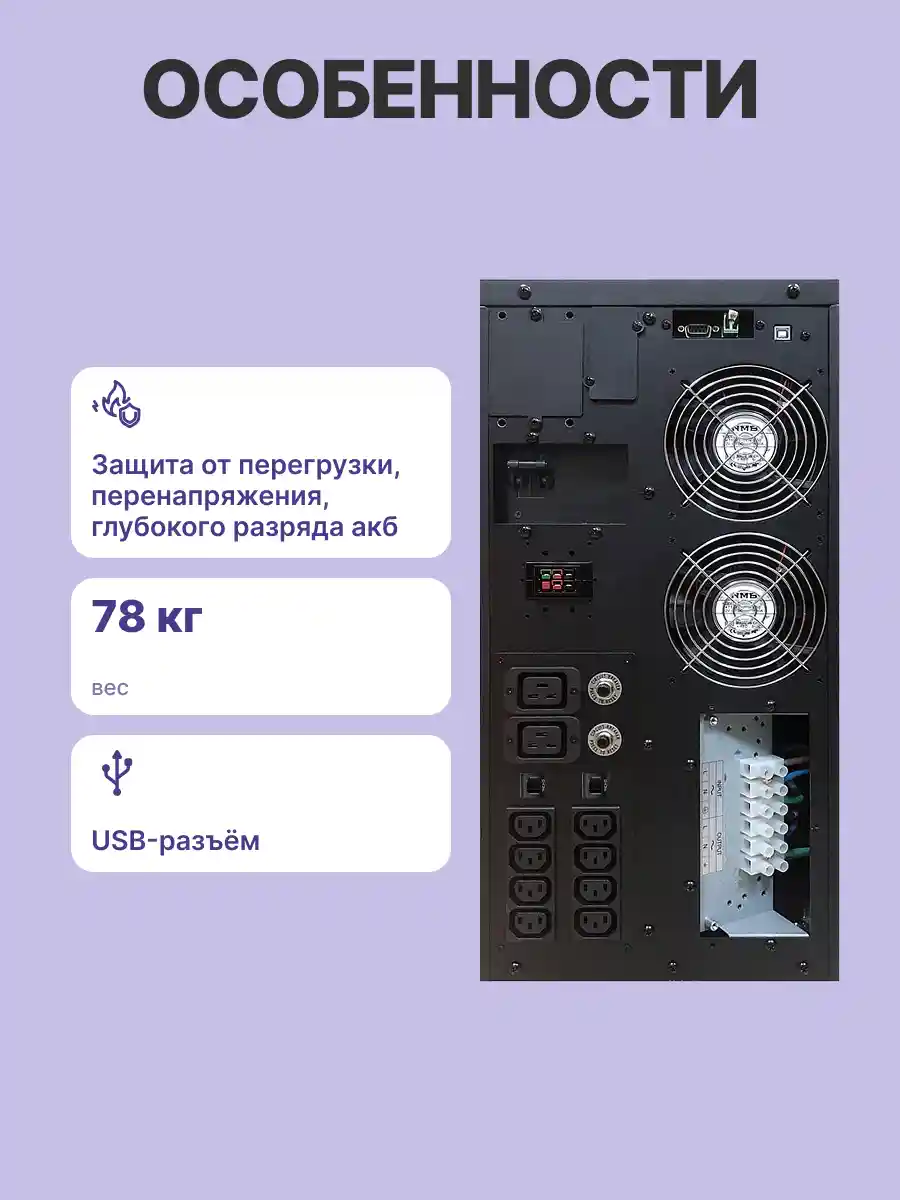- Тип ИБП: двойное преобразование