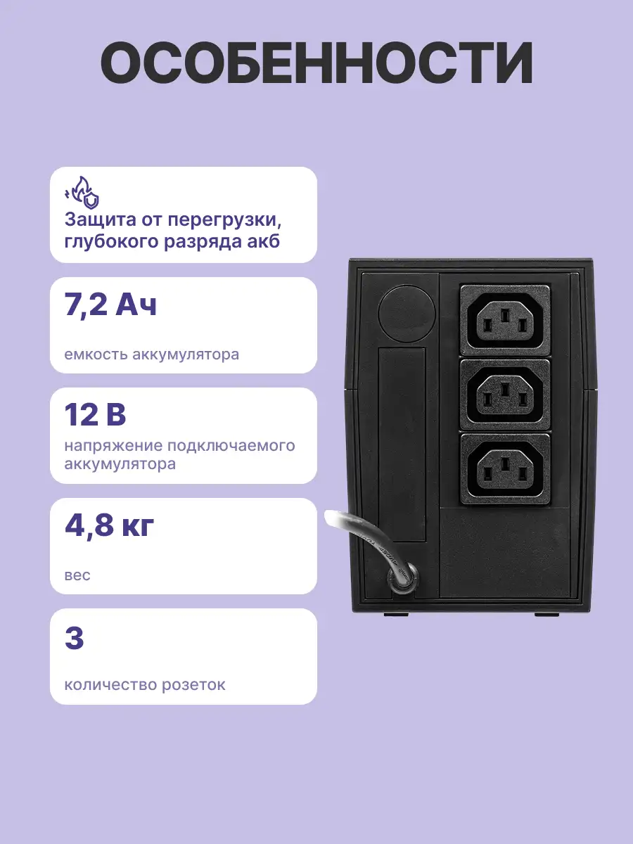 - Тип ИБП: Line-Interactive