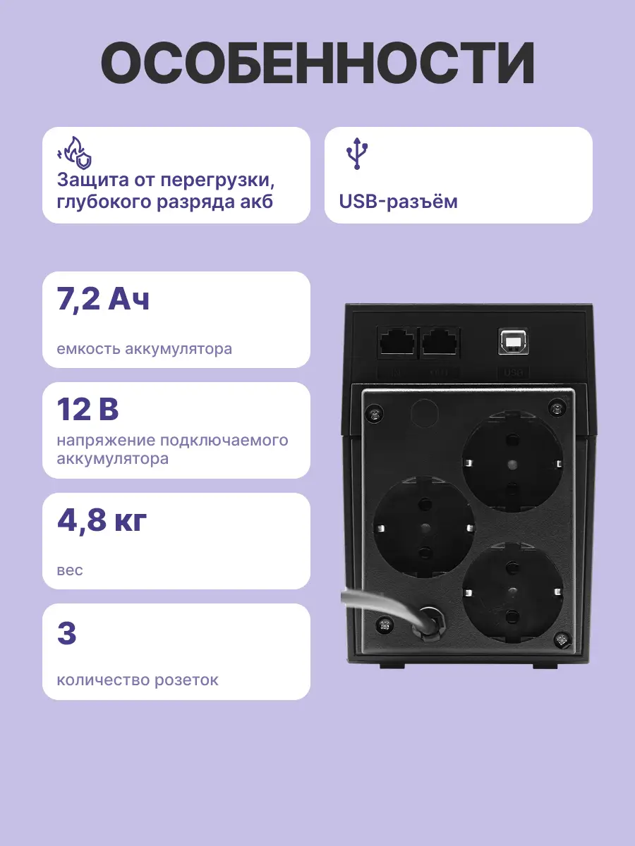 - Тип ИБП: Line-Interactive