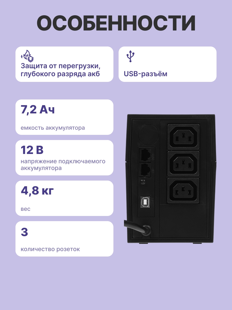 - Тип ИБП: Line-Interactive