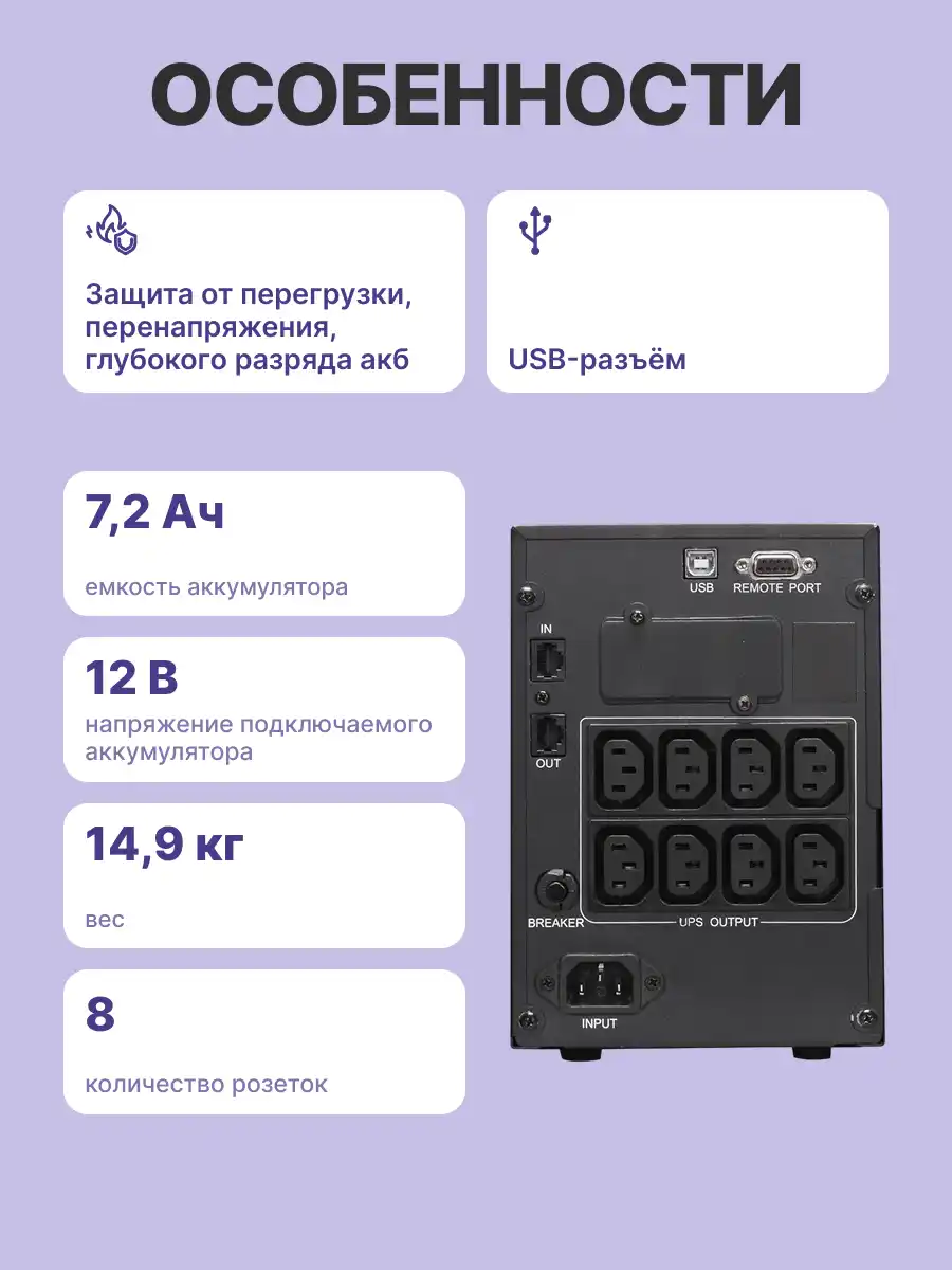 - Тип ИБП: Line-Interactive
