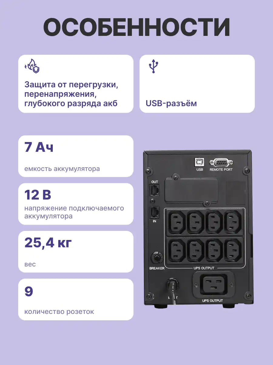 - Тип ИБП: Line-Interactive