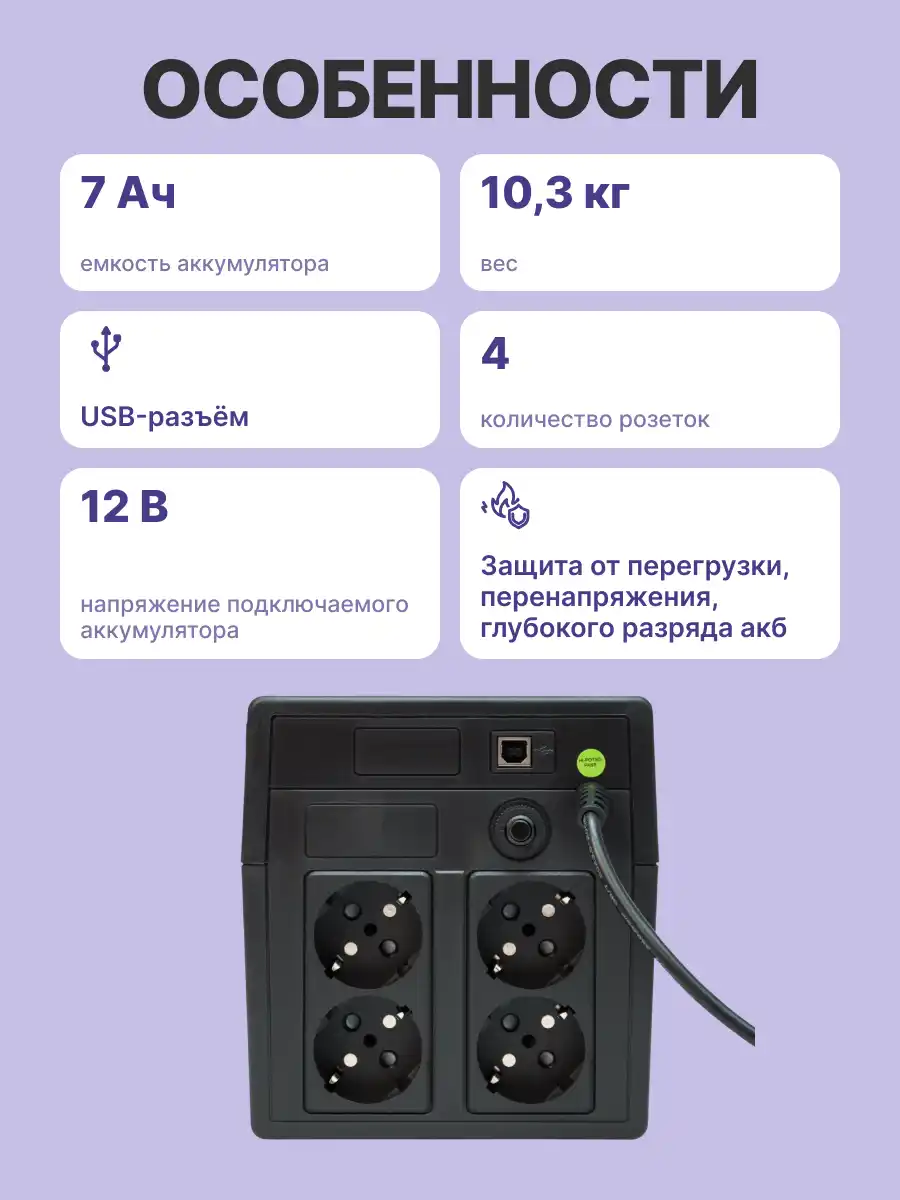- Мощность 1050 ВА / 600 Вт.