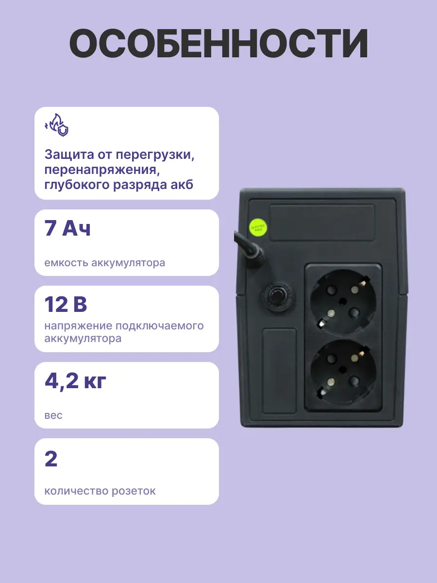 - Мощность 650 ВА / 360 Вт.
