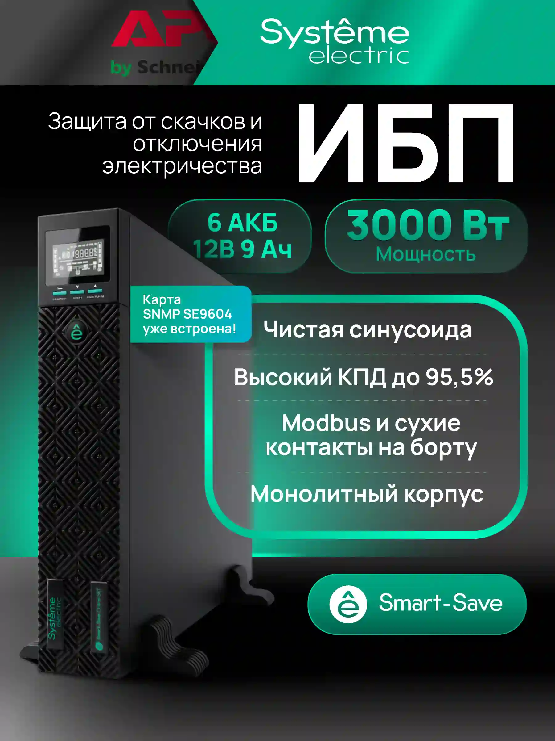 ИБП Systeme Electric SRTSE 2 поколения 3000 ВА/Вт - это источник бесперебойного питания двойного преобразования, предназначенный для защиты серверного и сетевого оборудования на малых и средних предприятиях.
