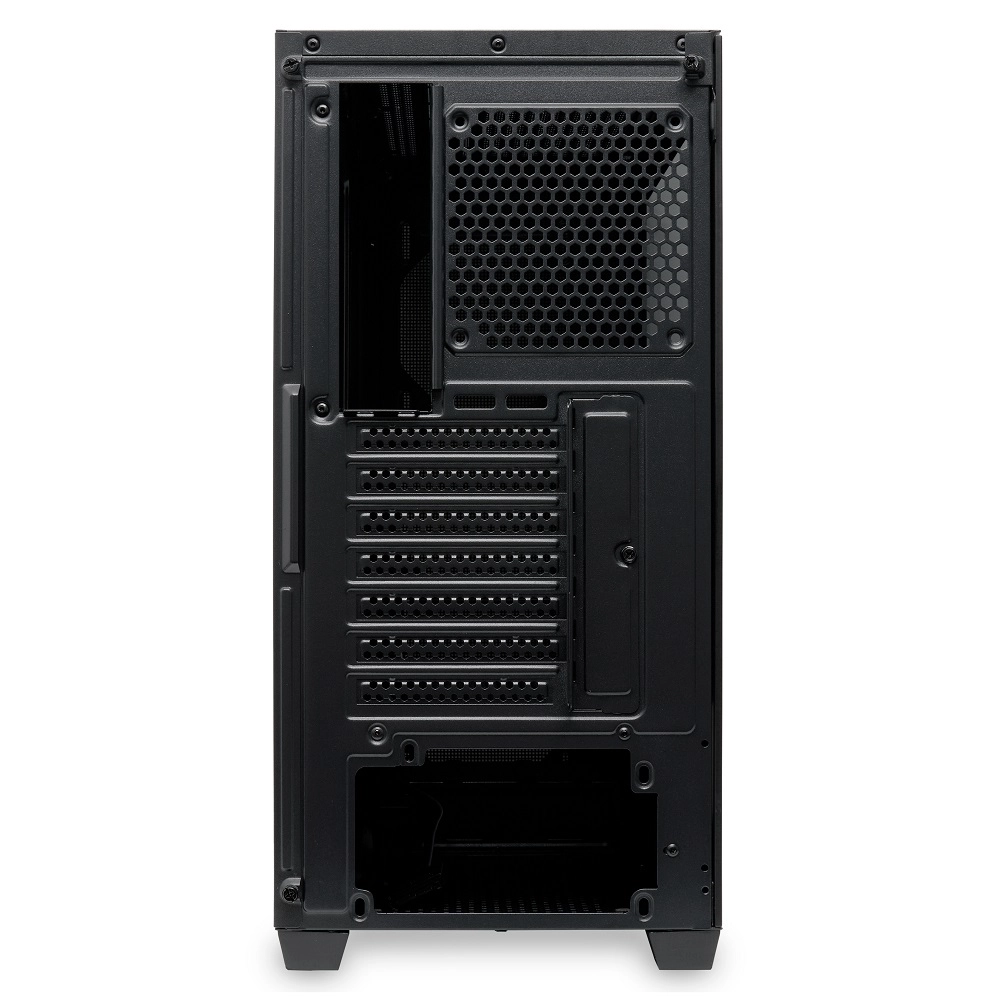 Эта модель в строгом чёрном цвете с боковой панелью из закалённого стекла и сетчатой фронтальной частью идеально подойдёт для сборки производительных игровых и рабочих систем.