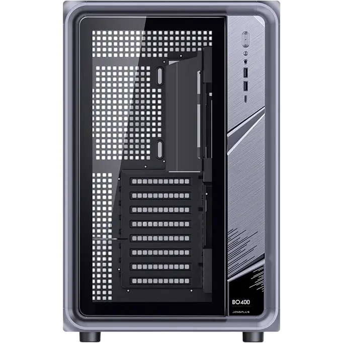 Корпус Jonsbo BO400 — премиальное решение в форм-факторе Midi-Tower, выполненное в концепции «аквариум» с панорамным обзором. Модель построена на прочном каркасе из алюминиевого сплава и стали, лицевая панель которого выполнена из закаленного стекла, верхняя панель является взаимозаменяемой со стеклянной. Корпус поддерживает установку материнских плат ATX, mATX и Mini-ITX, включая современные модели со скрытым подключением (Back-connect), и поставляется без блока питания, предоставляя пользователю свободу выбора компонентов.