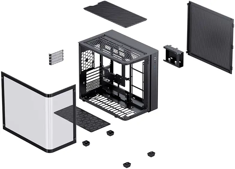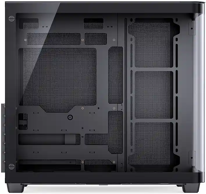 Компания Jonsbo — одна из немногих, кто реализовал усовершенствованную версию этой концепции. Она заключается в использовании одного куска стекла, изогнутого вдоль угла, что позволяет устранить границу между двумя отдельными стеклянными панелями.