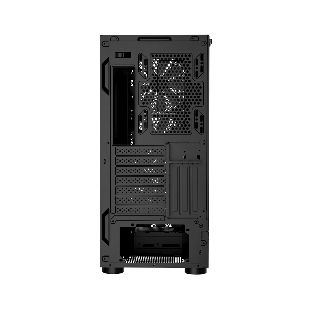 Корпус оснащен тремя предустановленными вентиляторами диаметром 120 мм с ARGB подсветкой, что не только улучшает внешний вид системы, но и способствует эффективному охлаждению. Сетчатая конструкция обеспечивает улучшенную вентиляцию, помогая поддерживать низкую температуру всех компонентов, даже при высоких нагрузках.