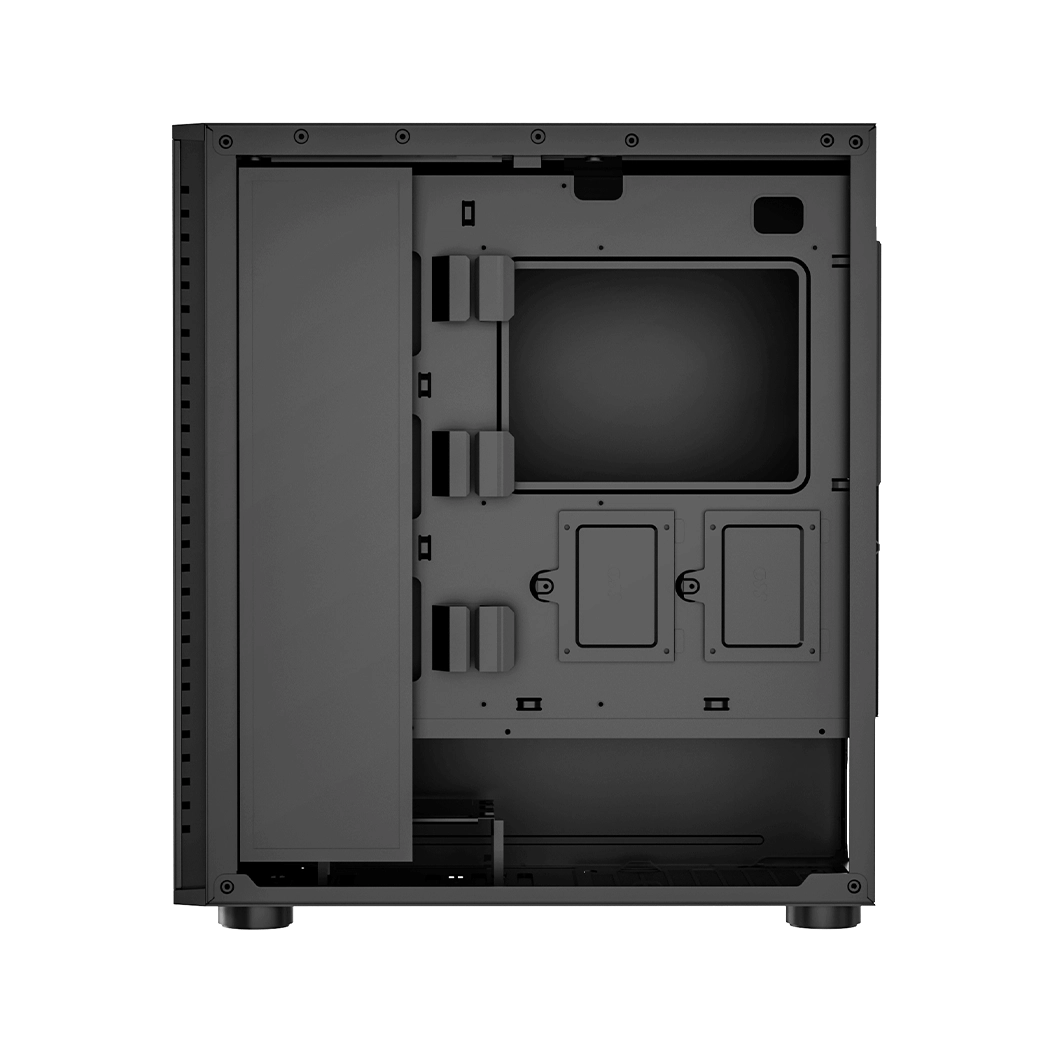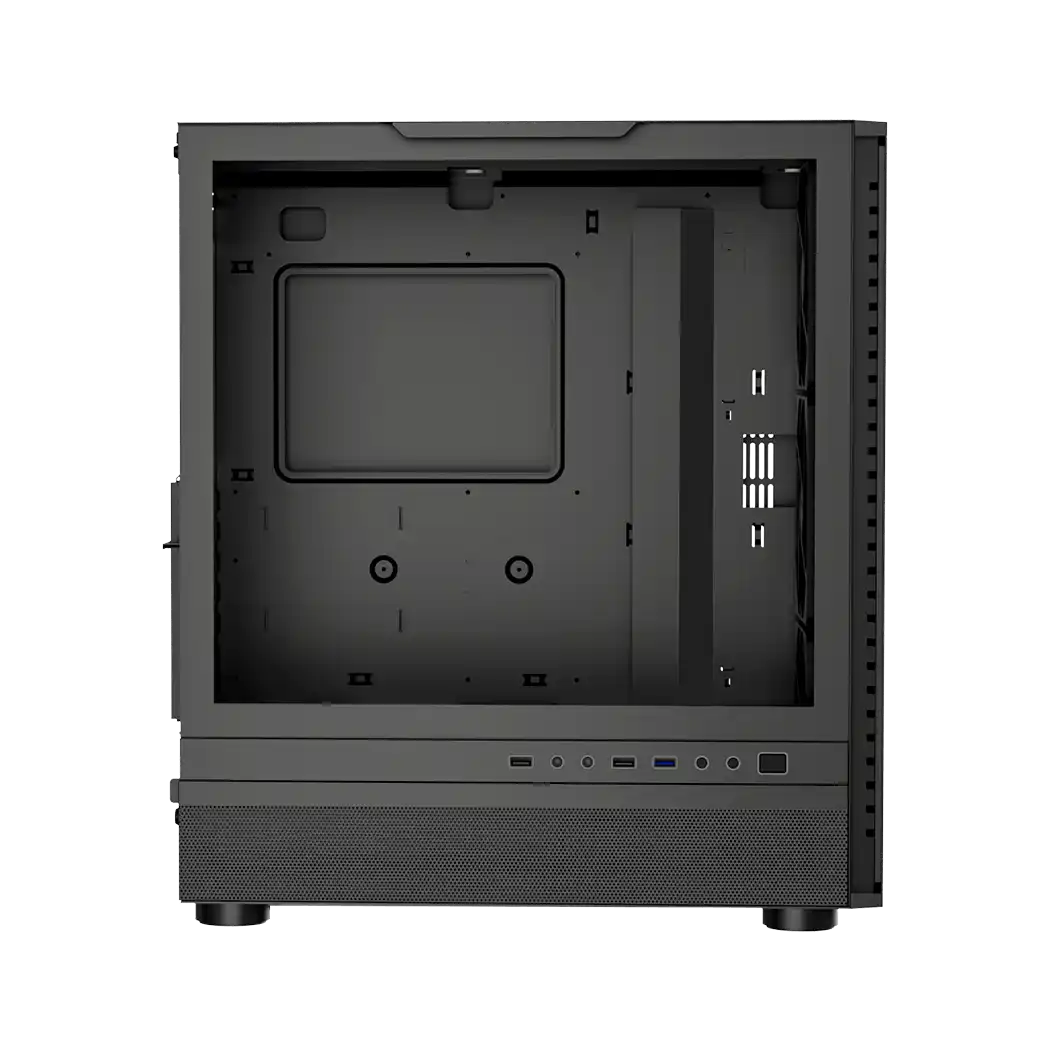 Корпус выполнен из прочной SPCC стали, что гарантирует его долговечность и устойчивость к повреждениям. Черный цвет и сетчатые панели придают системе элегантный и современный вид, который гармонично впишется в любой интерьер. Прозрачная боковая панель из закаленного стекла позволяет демонстрировать внутреннюю компоновку системы.