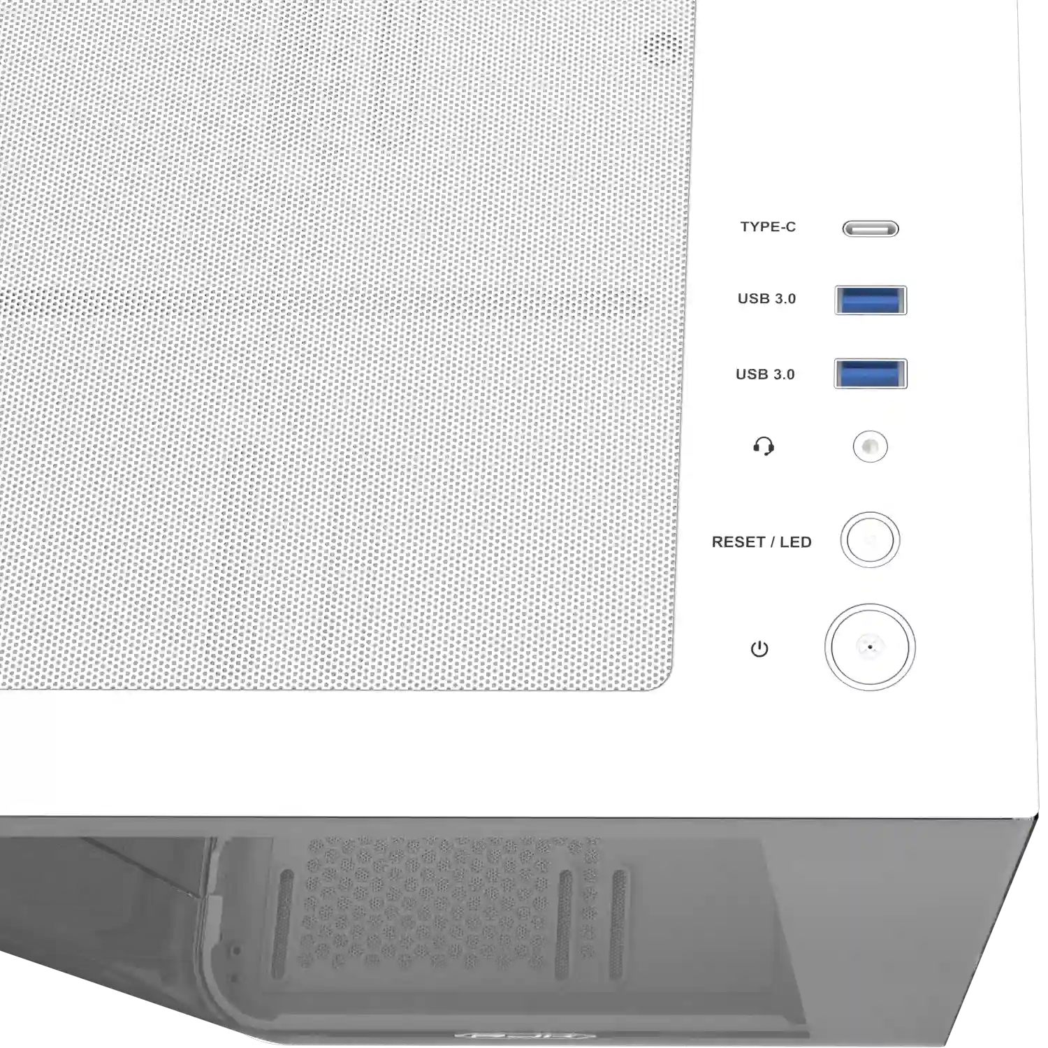 На верхней панели расположены два порта USB 3.0, один разъём USB Type-C и аудиоразъёмы, что обеспечивает быстрый и удобный доступ к современным интерфейсам. Все элементы управления расположены эргономично для максимального комфорта.