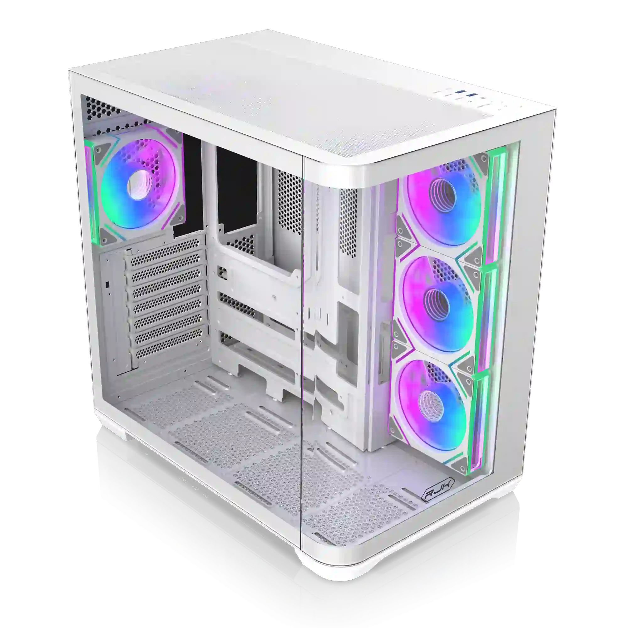 Корпус Raijintek ATREUS BT7 — это современный корпус формата Midi-Tower, сочетающий в себе эффектный внешний вид и широкие возможности для высокопроизводительных сборок. Модель выполнена в стильном белом цвете и оснащена боковой панелью из закалённого стекла, подчеркивающей визуальное оформление системы.