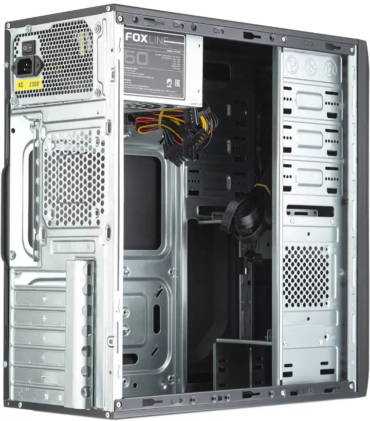 Корпус Foxline FL-815-FZ450R имеет простой и выдержанный внешний вид, очень удобное расположение кнопки запуска, а также разъемы USB и аудио. Модель имеет уже встроенный блок питания на 450 Вт. Такого показателя мощности хватает для комплектации системного блока дополнительными устройствами (графическая карта, аудиокарта) с очень хорошими техническими показателями. Корпус имеет семь слотов для установки дополнительных плат.