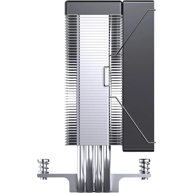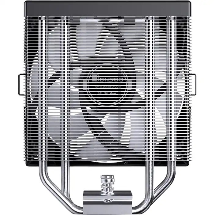 Основу составляют четыре тепловые трубки диаметром 6 мм, выполненные из меди. Они контактируют непосредственно с крышкой процессора по технологии прямого контакта, что ускоряет передачу тепла от источника нагрева. Трубки пронизывают радиатор из алюминиевых пластин, равномерно распределяя по нему тепловую энергию. В основании кулера также используется медь, что дополнительно повышает эффективность теплосъема и позволяет процессору дольше сохранять высокие частоты без троттлинга.