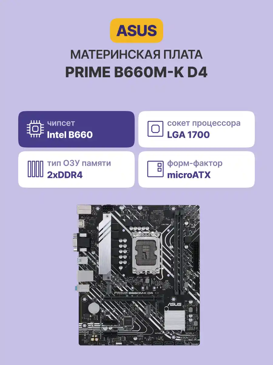 Материнская плата ASUS PRIME B660M-K D4 (90MB1950-M1EAY0)