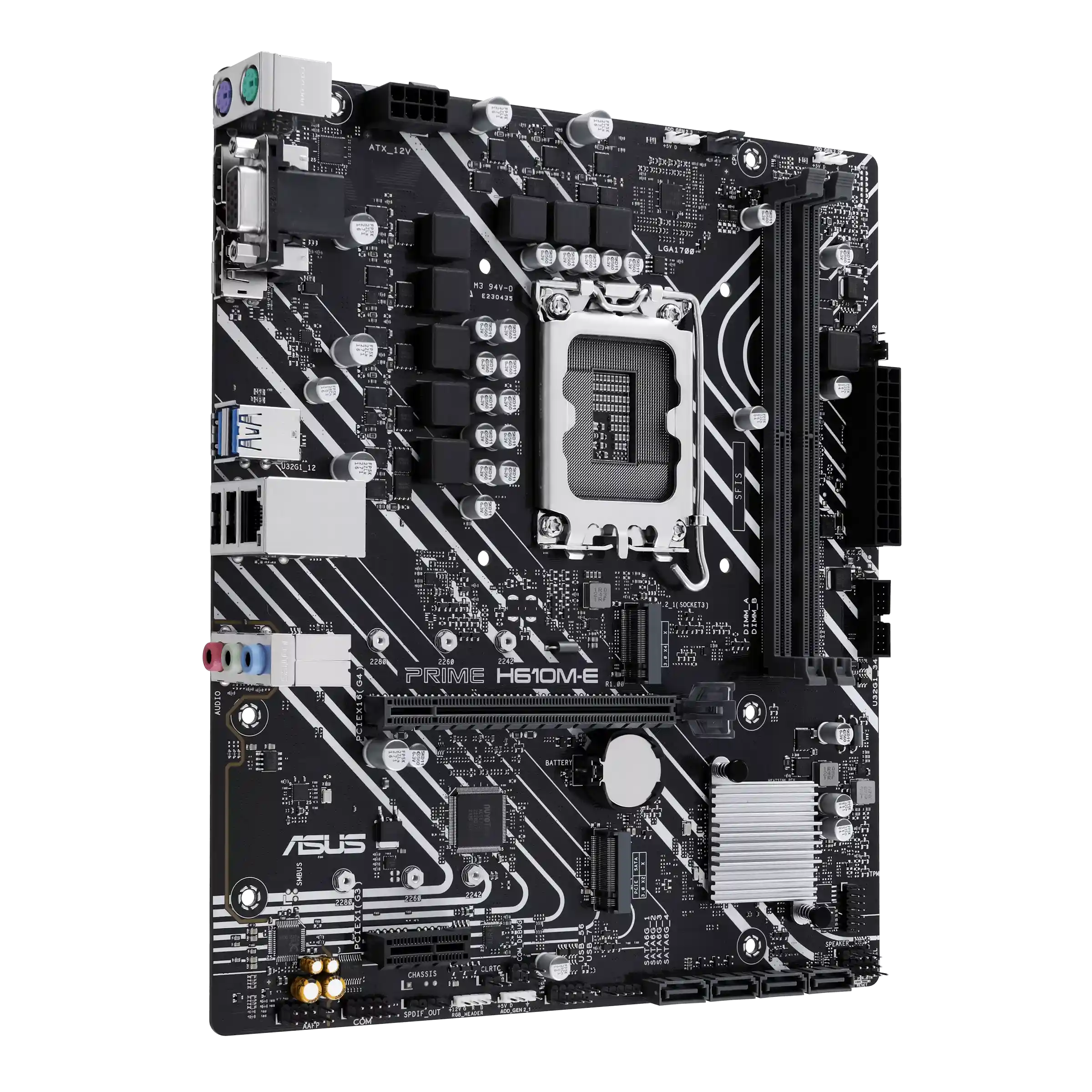 ASUS Prime H610M-E-CSM, материнская плата Intel H610 (LGA 1700) mATX с DDR5, PCIe 4.0, двумя слотами M.2, Realtek 1 Gb Ethernet, DisplayPort, HDMI, VGA, портами USB 3.2 Gen 1, SATA 6 Гбит/с, COM-заголовок, Aura Sync