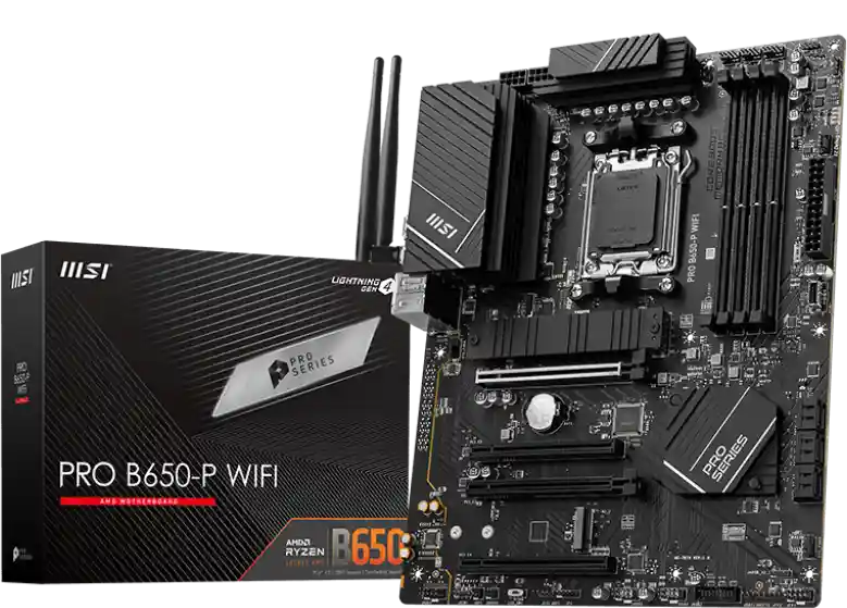 Модель PRO B650-P WIFI – это широкая функциональность и встроенный беспроводной модуль Wi-Fi в сочетании с поддержкой памяти DDR5.