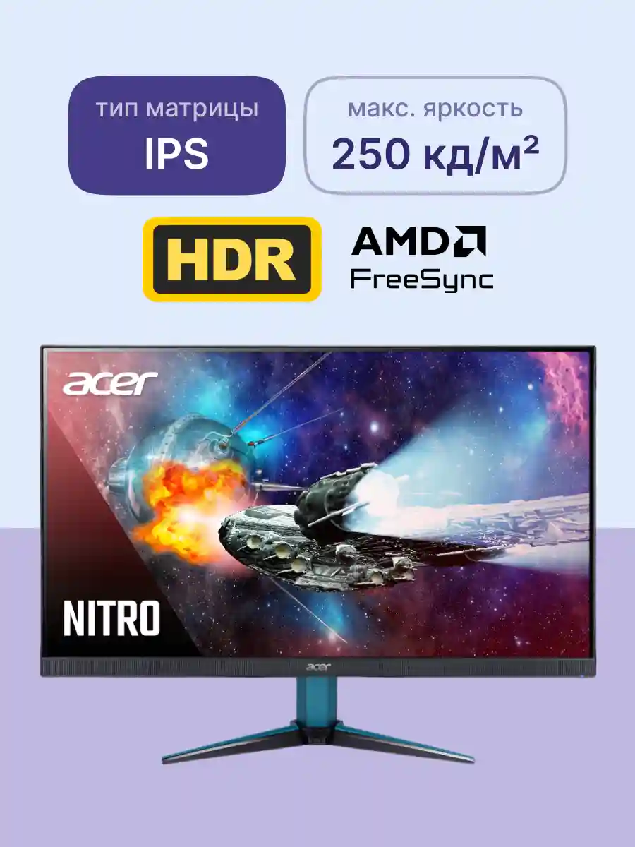 Монитор Acer VG271UM3bmiipx с кодом UM.HV1CD.301 представляет собой 27-дюймовое решение премиум-класса от серии Nitro с безрамочным дизайном ZeroFrame. Черный корпус в сочетании с тонкими рамками создает современный и агрессивный внешний вид, характерный для геймерских устройств.