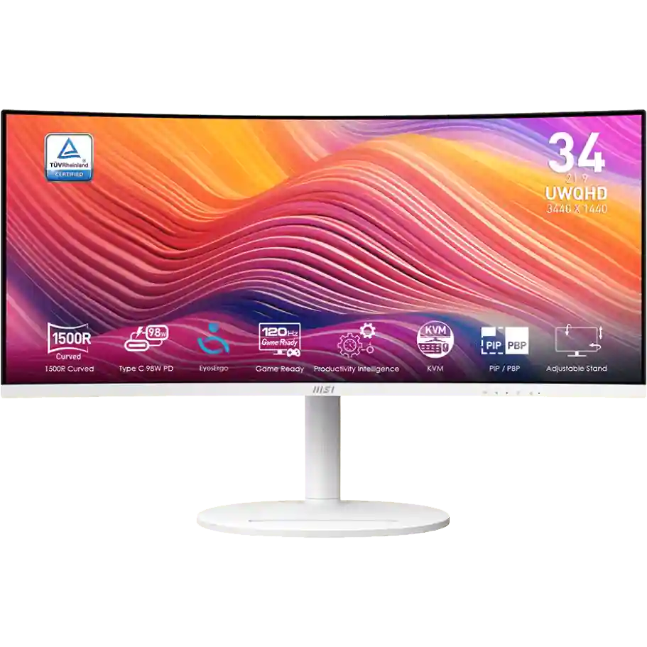 MSI Modern MD342CQPW — это современное решение для тех, кто ценит качество изображения, комфорт и стиль в каждой детали.