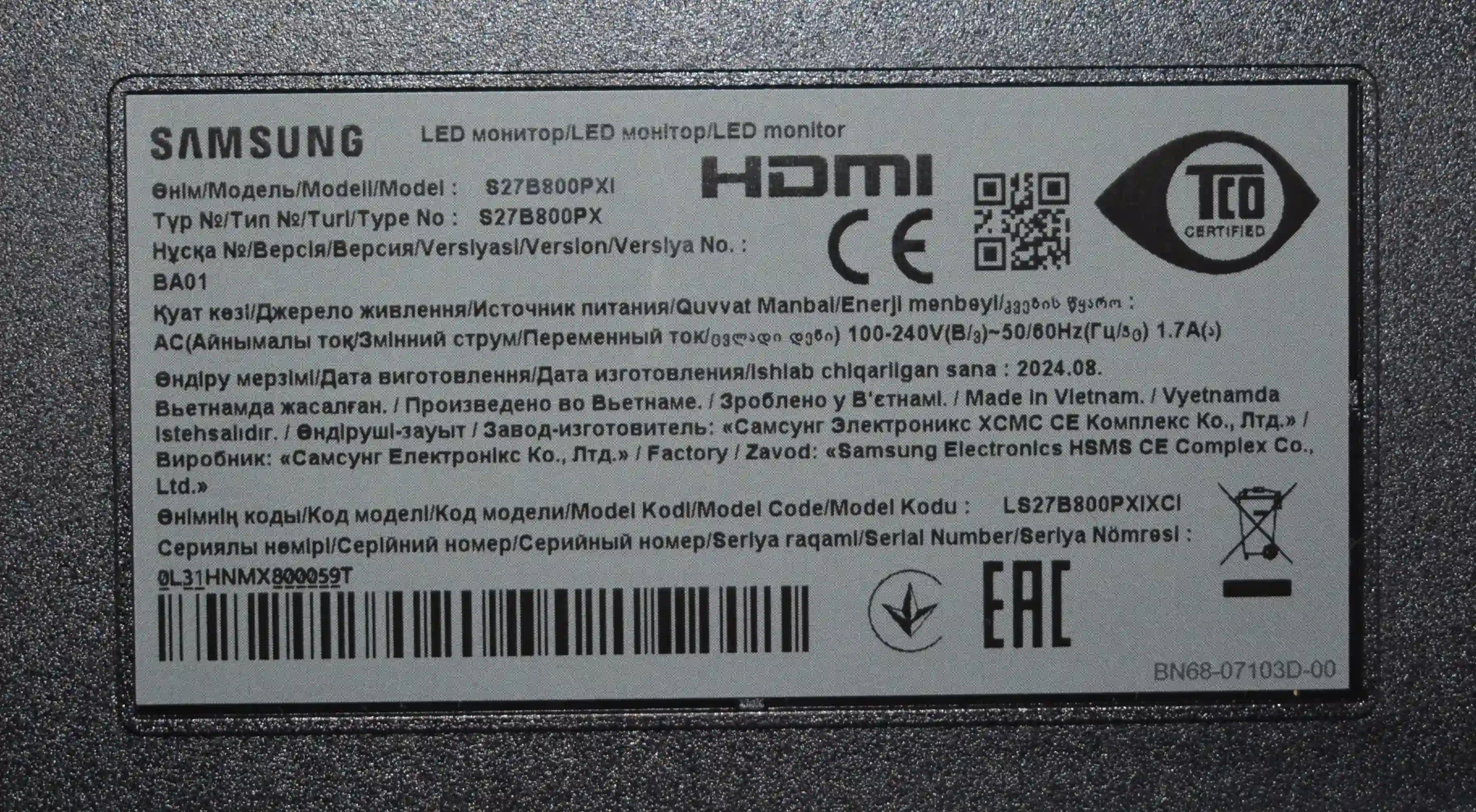 Монитор SAMSUNG S27B800PXI 27" (LS27B800PXIXCI) k6 000028254