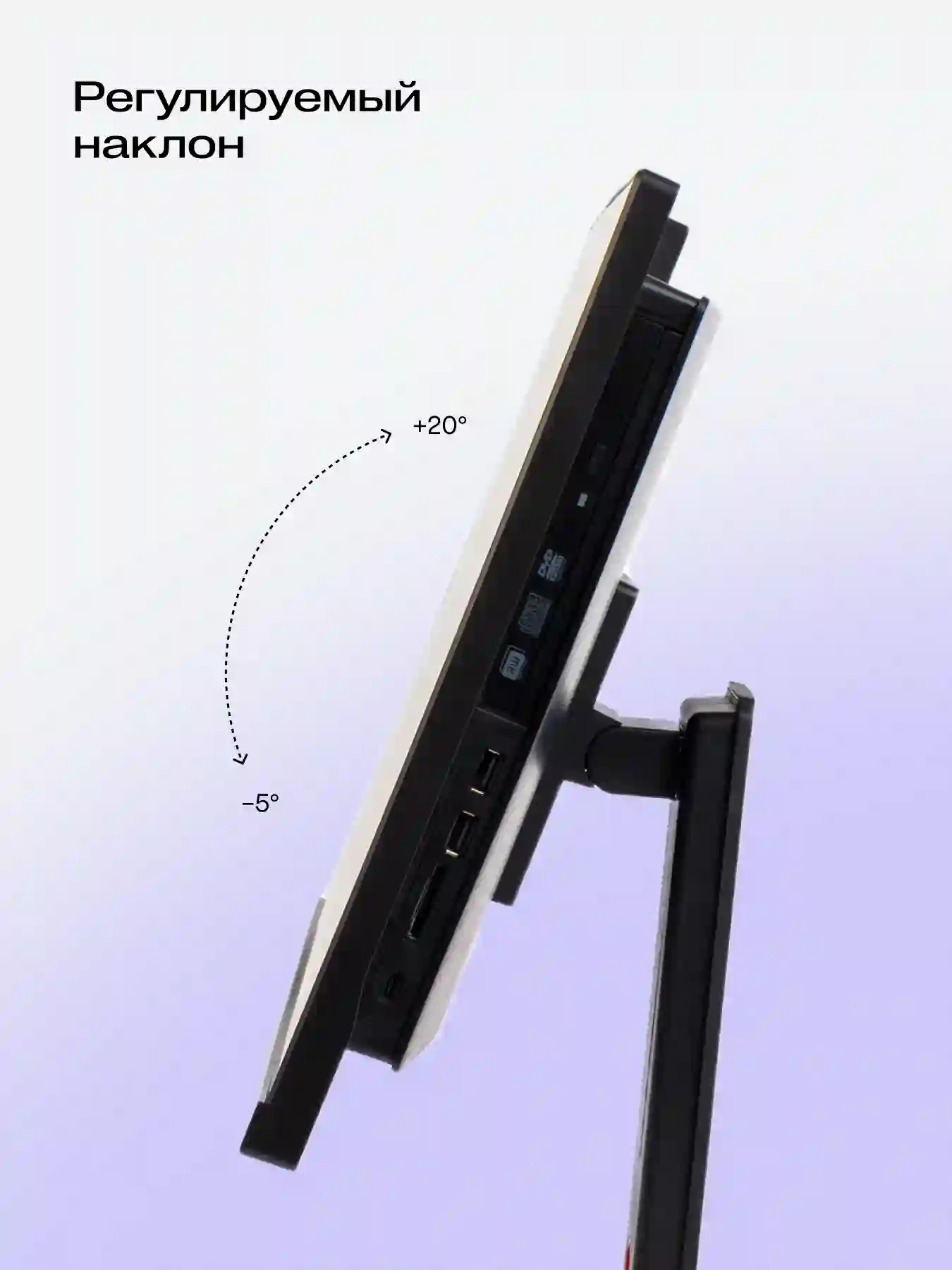 Моноблок имеет стильный дизайн с тонким корпусом и матовым покрытием, которое скрывает отпечатки пальцев и не бликует.