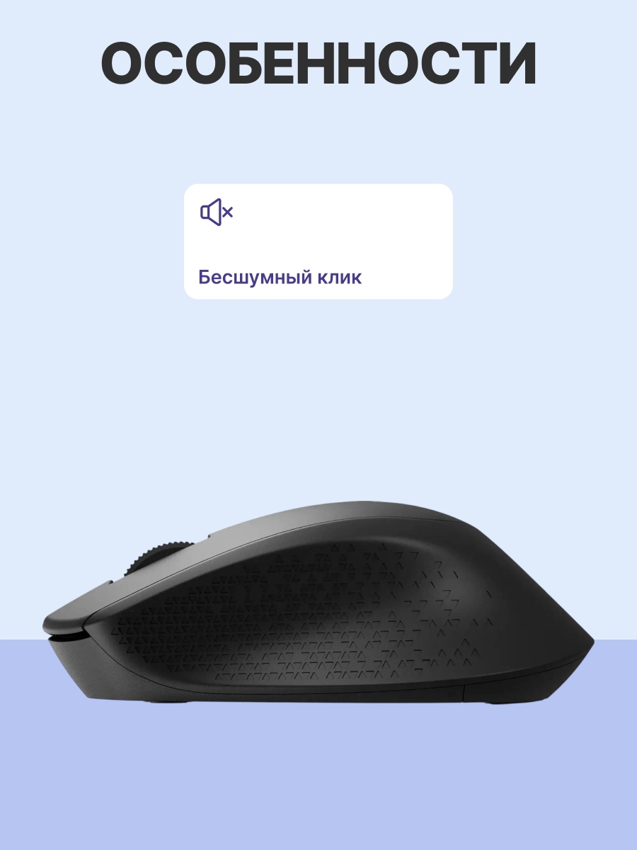 Отсутствие отвлекающих факторов положительно сказывается на работе. Технология SilentTouch, разработанная компанией Logitech, позволила снизить громкость издаваемых мышью звуков более чем на 90 %.