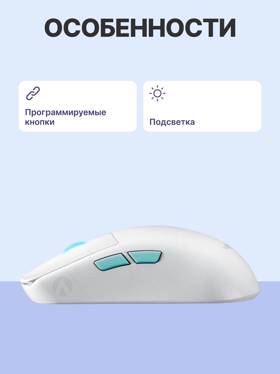 - Микропереключатели ROG обеспечивают стабильное усилие нажатия и долгий срок службы до 70 миллионов щелчков.