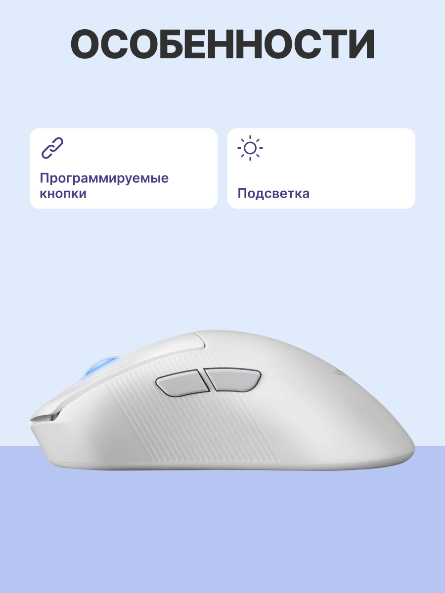 - Поддержка радиоканала 2.4 ГГц с использованием USB-передатчика ROG SpeedNova.