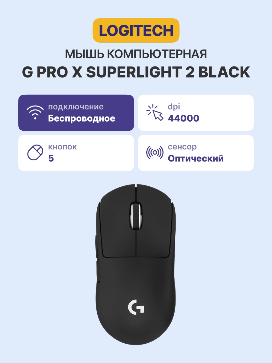 Мышь игровая беспроводная LOGITECH G PRO Х Superlight 2 Black Retail (910-006630)