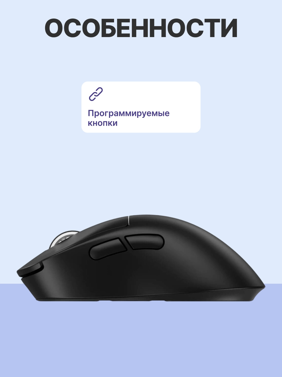 Беспроводная связь обеспечивается посредством Bluetooth и фирменного адаптера Lightspeed, что позволяет подключать мышь практически к любому устройству. Время автономной работы достигает до 95 часов непрерывного использования на одном заряде аккумулятора, что существенно увеличивает продолжительность игрового процесса без необходимости частого перезаряда батареи. Удобный кабель для зарядки оснащен разъемом USB Type-C, позволяющий быстро восстановить заряд батареи и продолжить игру без длительных перерывов. Заряженный аккумулятор обеспечивает длительное использование мыши без риска внезапного отключения.