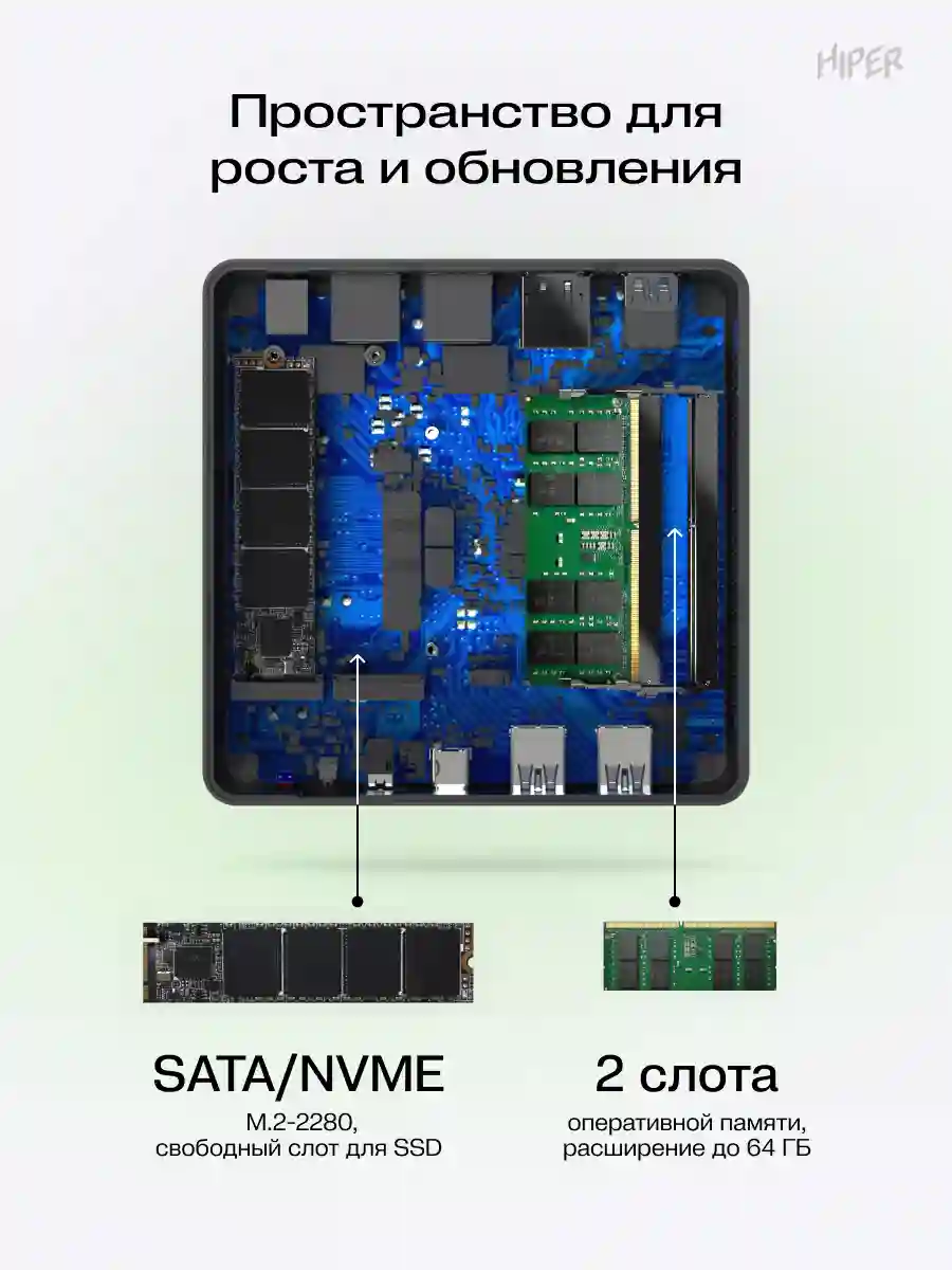 HIPER Factum FN2 — компактный и надёжный неттоп для дома и офиса. Оснащён SSD-накопителем, 8 ГБ оперативной памяти и современной операционной системой. Подходит для работы с документами, интернет-сёрфинга, удалённой учёбы и повседневных задач.