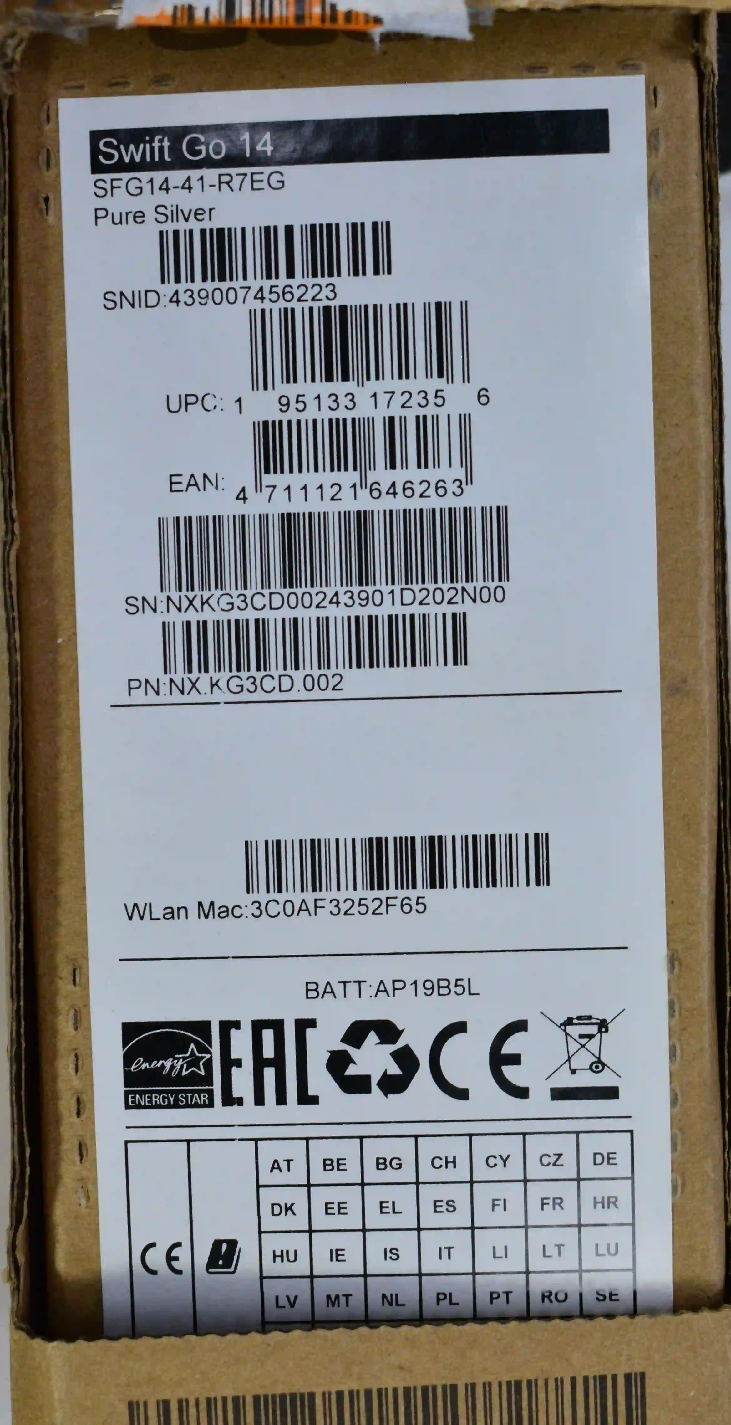 - Серия устройства: Acer Swift