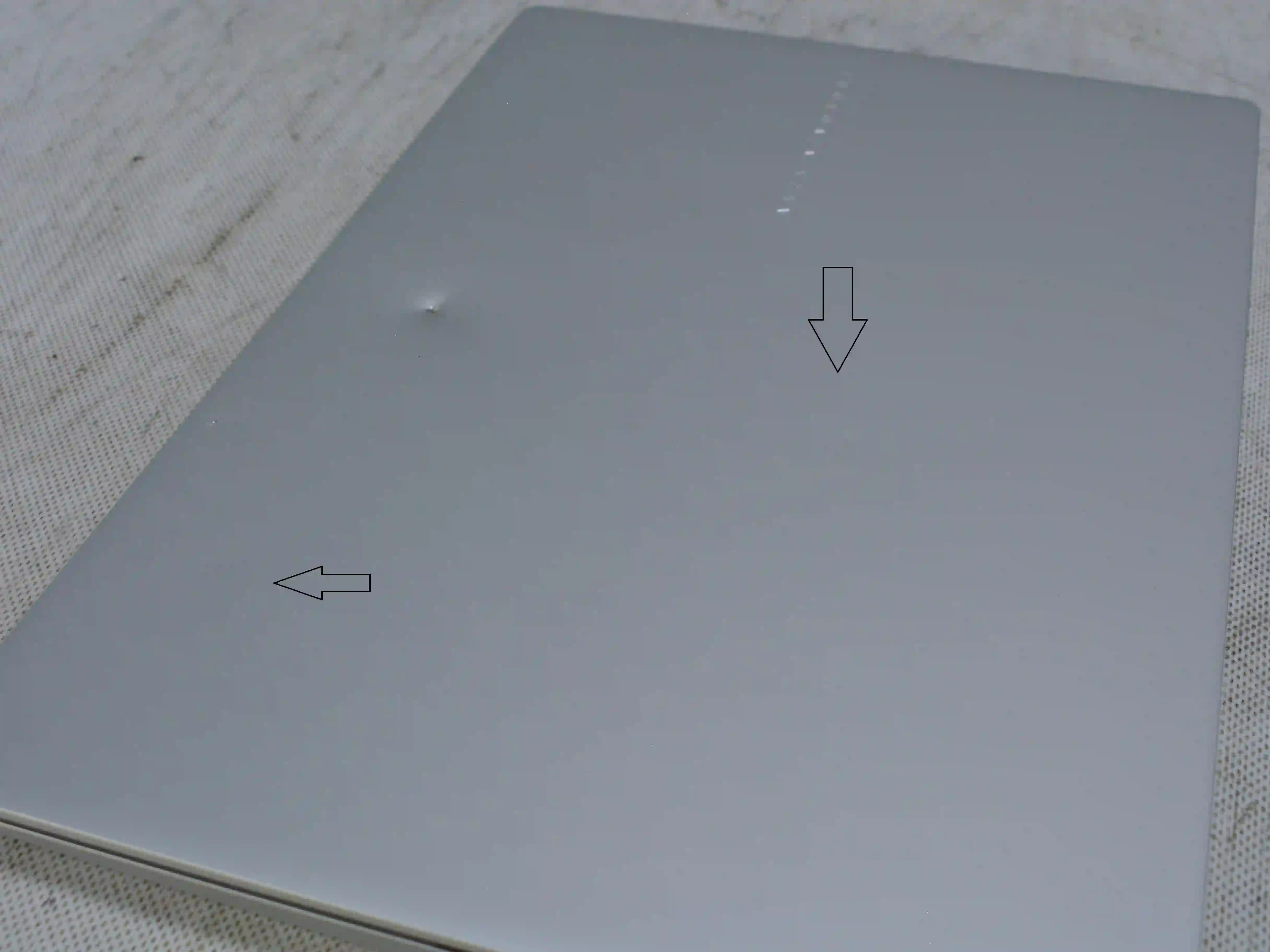 Состояние товара: Глубокая вмятина на крышке вследствие чего произошел дефект матрицы. Вмятины на крышке. Крышка имеет следы деформации